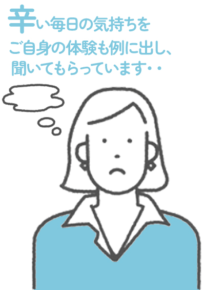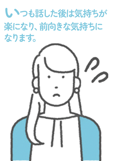 心療内科を受診しつつ話を聞いてもらってます。憂鬱な気持ちを私が納得する迄聞いて下さいます。先生に話し切れないこと、辛い毎日の気持ちを良く分かってくれ、ご自身の体験も例に出して話しを聞いてくれるので助かっています。いつも有難うございます。森田 由紀子 様
